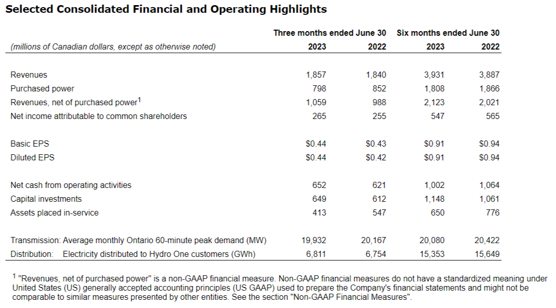 Hydro One Ltd. has released its financial and operating results for the second quarter ended June 30, 2023.