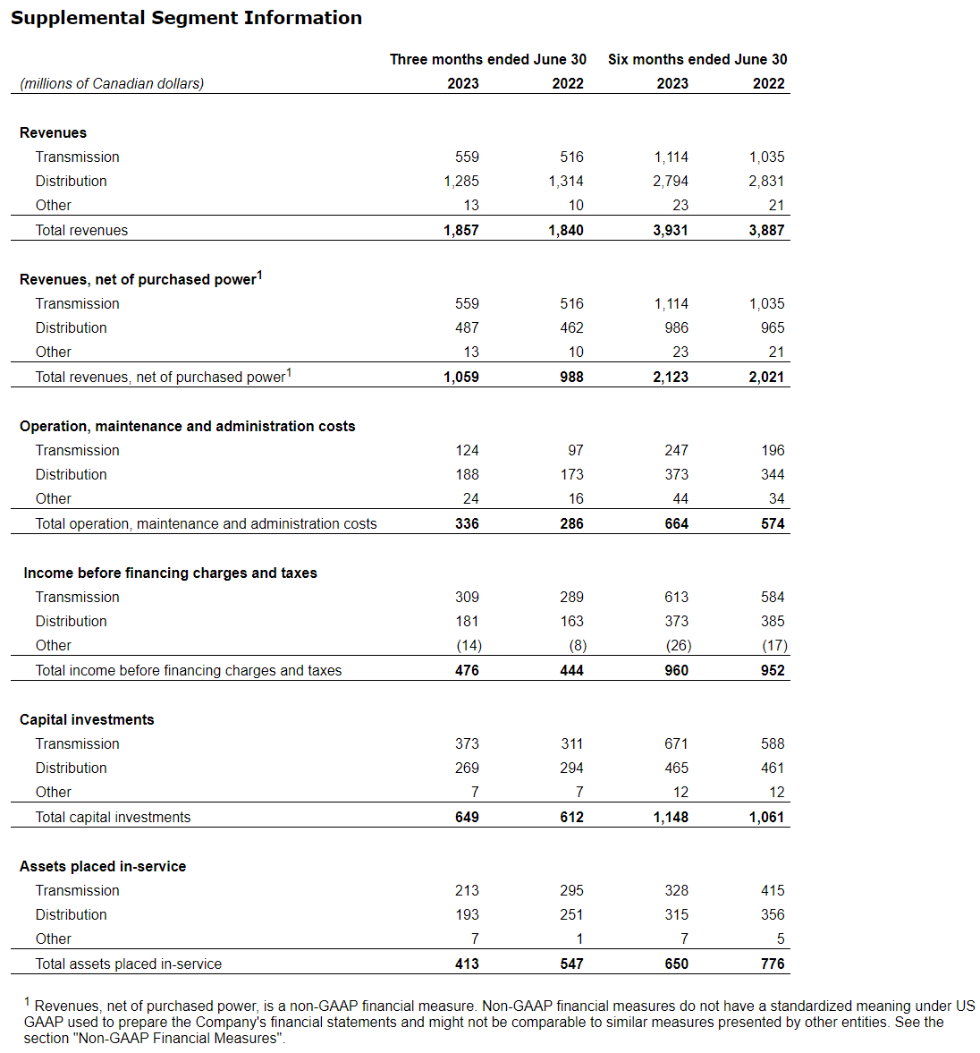 This press release should be read in conjunction with the Company's second quarter 2023 unaudited consolidated financial statements and MD&A. These financial statements and MD&A together with additional information about Hydro One, including the audited consolidated financial statements and MD&A for the year ended December 31, 2022 can be accessed at