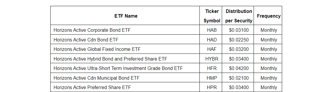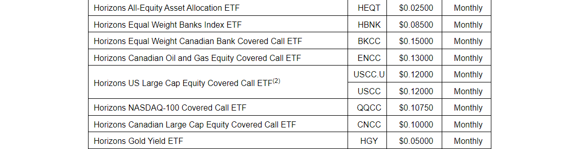 Horizons ETFs to pay distributions March 7