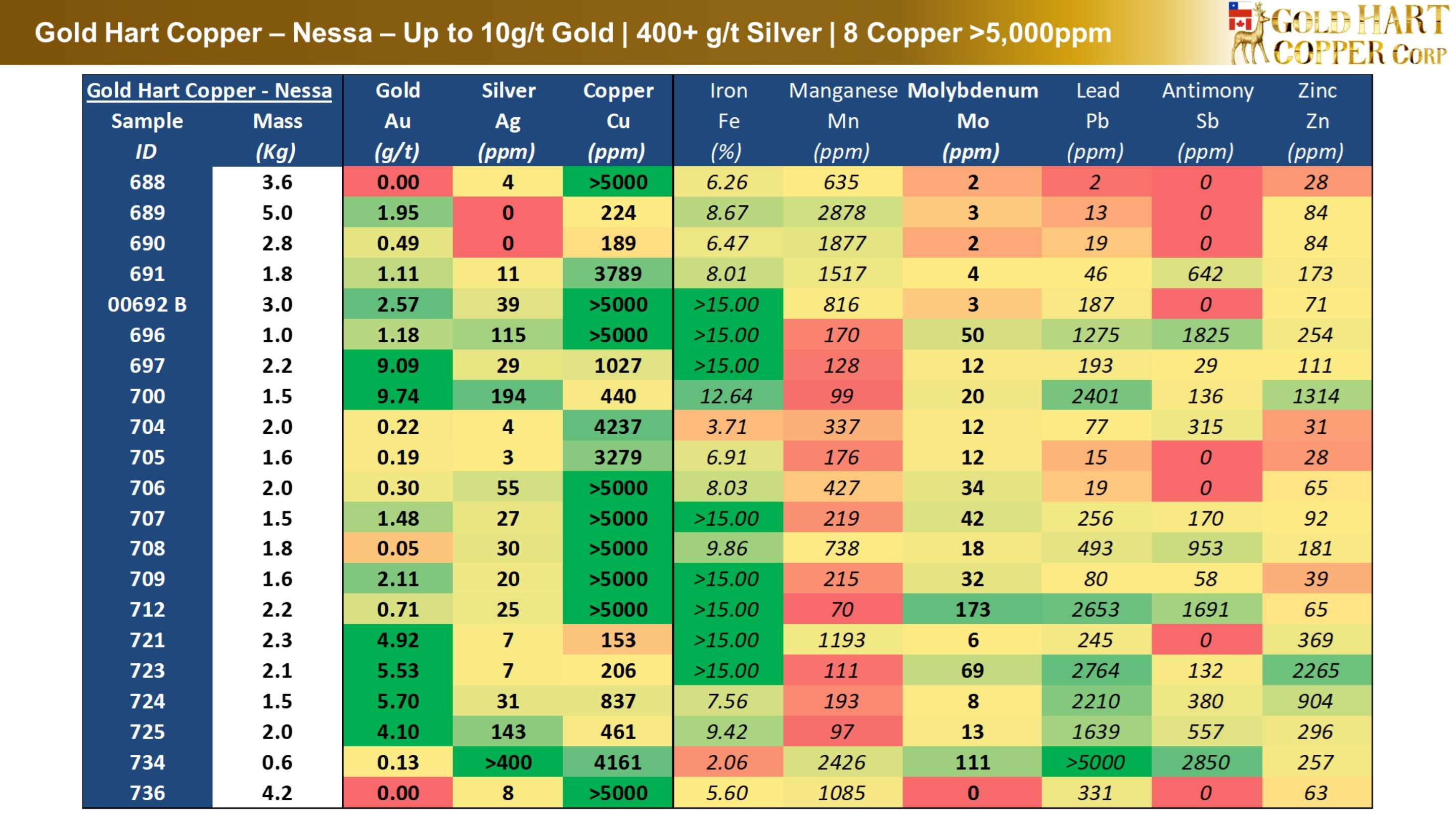 Gold Hart Copper - Nessa - Up to 10g/t Gold | 400+ g/t Silver | 8 Copper >5,000ppm