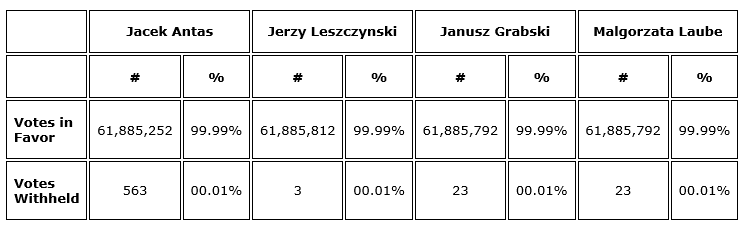 management information circular dated Dec. 15, 2025, were re-elected as directors of the company to hold office for the ensuing year or until their successors are elected or appointed. The detailed results of the vote for each director are set out below.