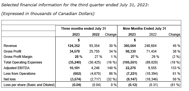- Gross profit increased to $34.6-million in the third fiscal quarter of 2023, compared with $25.8-million during the same period in 2022, representing an increase of 34 per cent year over year and 10 per cent sequentially.