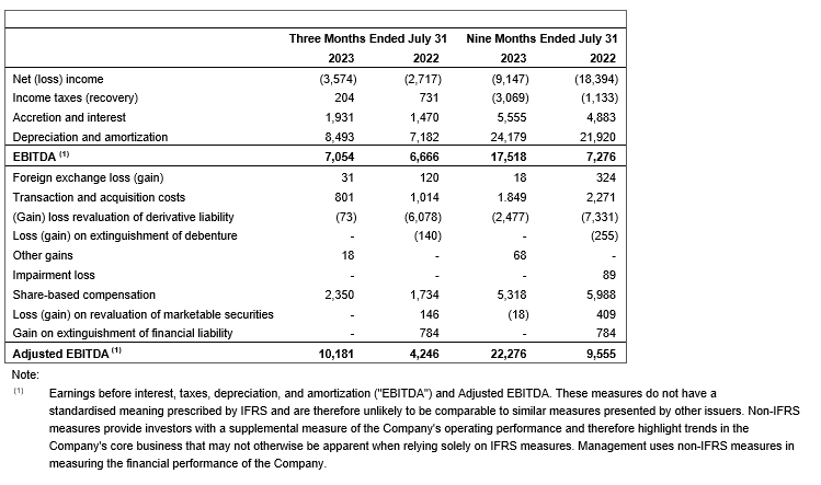 - Adjusted EBITDA (earnings before interest, taxes, depreciation and amortization) increased to $10.2-million (including a one-time return of $2.4-million from Manitoba's SRF) in the third fiscal quarter of 2023, compared with $4.2-million during the same period in 2022 and $6.6-million in the second fiscal quarter of 2023, representing an increase of 140 per cent year over year and 55 per cent sequentially.