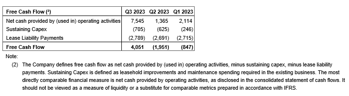 For locations operational throughout the third fiscal quarter of 2023 and 2022, same-store sales increased by 19 per cent year over year and 8 per cent sequentially. Calculated daily same-store sales increased by 5 per cent, representing the eighth consecutive quarter of same-store sales growth.