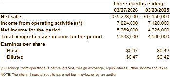 Hammond Manufacturing’s North American markets remained strong in the first quarter of 2026, while US tariffs negatively impacted earnings. With a strong commitment to customer service and a proactive approach to navigating the uncertainties of the geopolitical climate, the Company recently announced an 85,000 square foot expansion that will provide more paint and metal fabrication capacity.