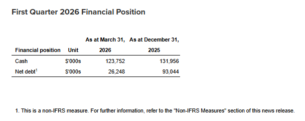 Jason Kosec, president, chief executive officer and director of Hemlo Mining, commented: "Q1 was transformational for the company, representing our first full quarter of ownership of the Hemlo gold mine and laying a strong foundation for the year ahead. We delivered production in line with expectations while upholding our standards for health, safety and environmental performance. During the quarter, we advanced our strategy of optimization, reinvestment and growth across multiple fronts -- transitioning to an owner-operated model ahead of schedule, launching our 130,000-metre drill program, advancing an updated mineral resource estimate, initiating key mining trade-off studies to support a future technical study, making strong progress transitioning off legacy Barrick systems, hiring key personnel across corporate and site functions, and executing a strategic royalty buyback. We also strengthened our financial position through the full repayment of our revolving credit facility. The pace and breadth of progress in the first quarter reinforce our confidence in the opportunity ahead at Hemlo."