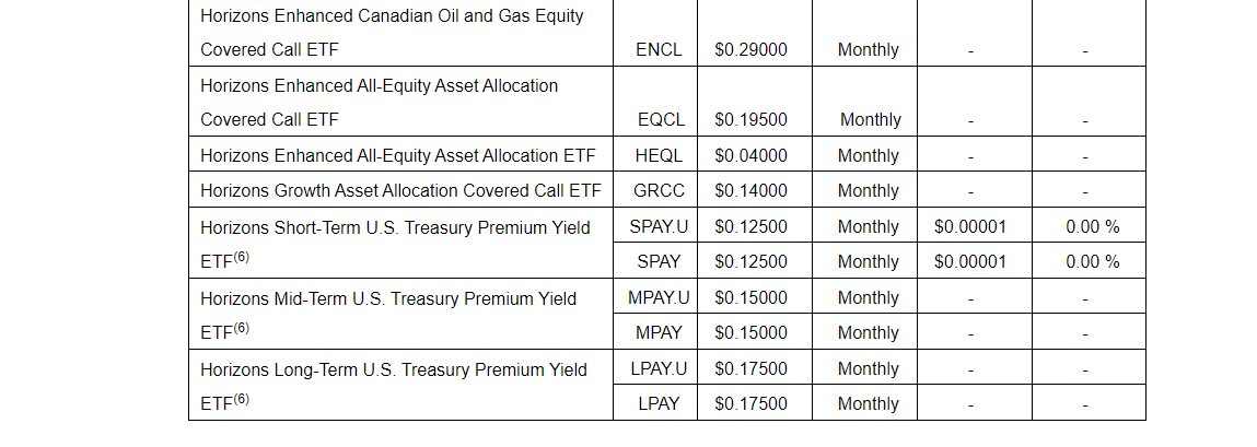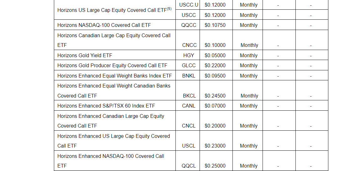 Horizons ETFs Management (Canada) Inc. has declared the distribution amounts per security for its exchange-traded funds (ETFs) for the period ending Dec. 31, 2023, as indicated in attached tables.