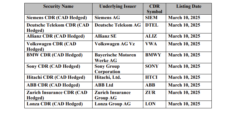 listed and available for trading on Cboe Canada at the start of trading on Monday, March 10,