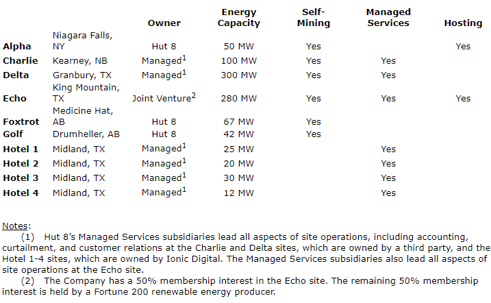 - Hut 8's digital asset mining geographical footprint includes the following sites as of February 1, 2024: