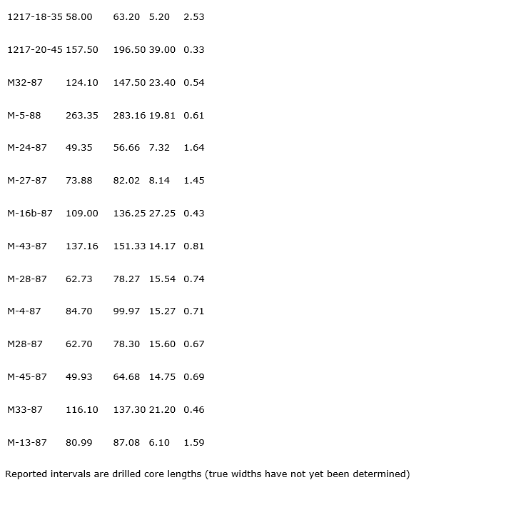 - 3.05 g/t Au over 7.62 metres (M-12-87);