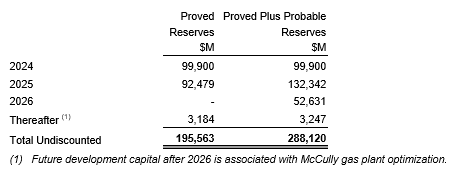 An attached table contains a summary of the estimated FDC required to bring proven undeveloped reserves and proven plus probable undeveloped reserves on production.