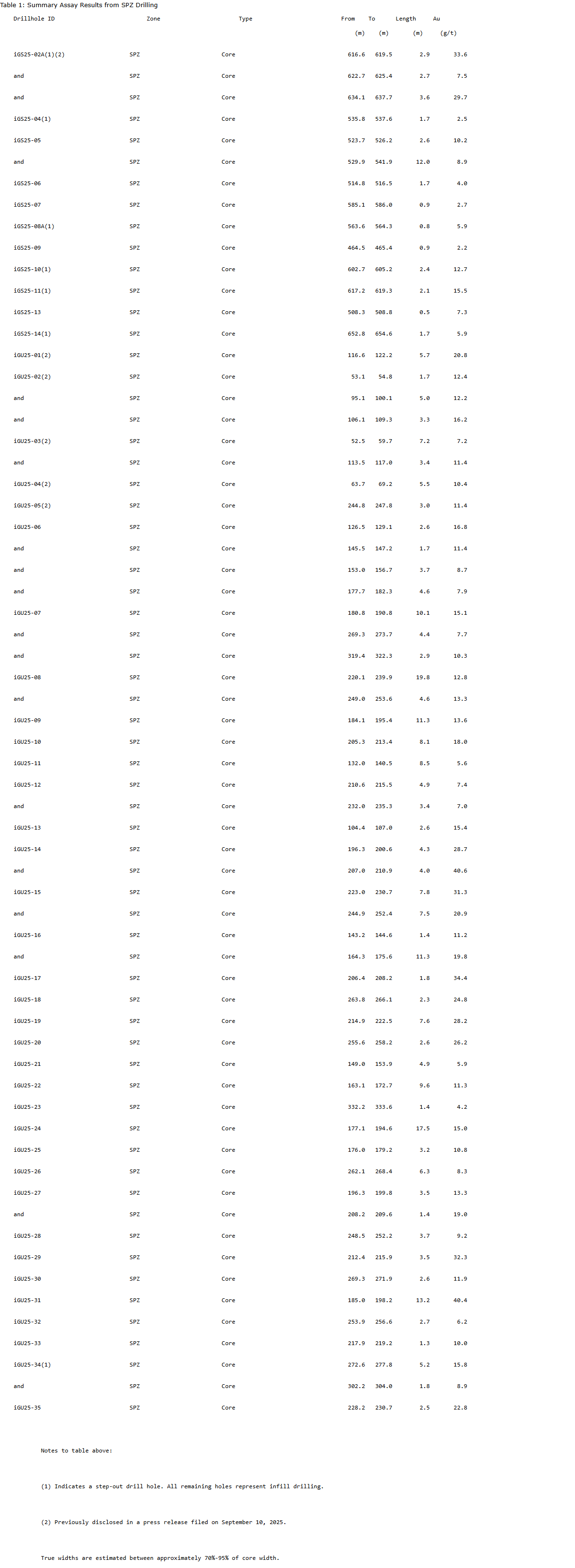 40.4 g/t Au over 13.2 m in hole iGU25-31;