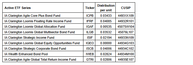 IA CLARINGTON INVESTMENTS ANNOUNCES FEBRUARY 2026 DISTRIBUTIONS FOR ACTIVE ETF SERIES