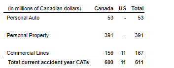 The attached table provides a breakdown of the catastrophe losses by reporting segment.