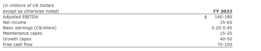 - Basic earnings guidance of 25 Canadian cents to 45 Canadian cents/share;