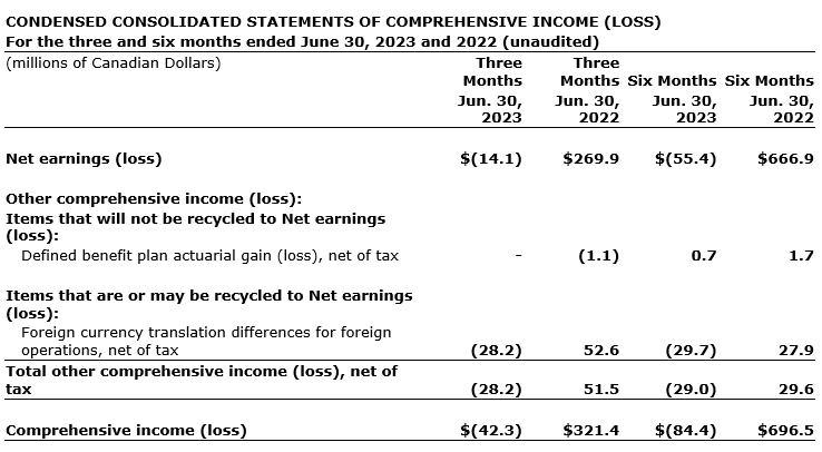 - Liquidity is expected to be further strengthened during the remainder of 2023 by income tax refunds totalling approximately $100.0-million related to overinstalments for the 2022 tax year.