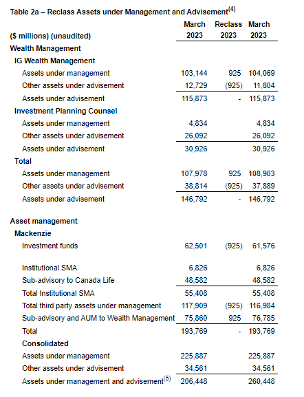 IGM Financial -- assets under management and advisement of $263-billion were up 1 per cent in the month. Total net outflows were $477-million compared with net outflows of $111-million in April, 2022. Investment fund net redemptions were $327-million compared with net redemptions of $85-million in April, 2022.