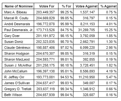 IGM Financial Inc. held its annual meeting of shareholders earlier today. All of the nominees for election as directors listed in its management proxy circular dated Feb. 17, 2023, were elected by a majority of the votes cast by ballot or represented by proxy at the meeting.