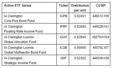 IA CLARINGTON INVESTMENTS ANNOUNCES OCTOBER 2023 DISTRIBUTIONS FOR ACTIVE ETF SERIES