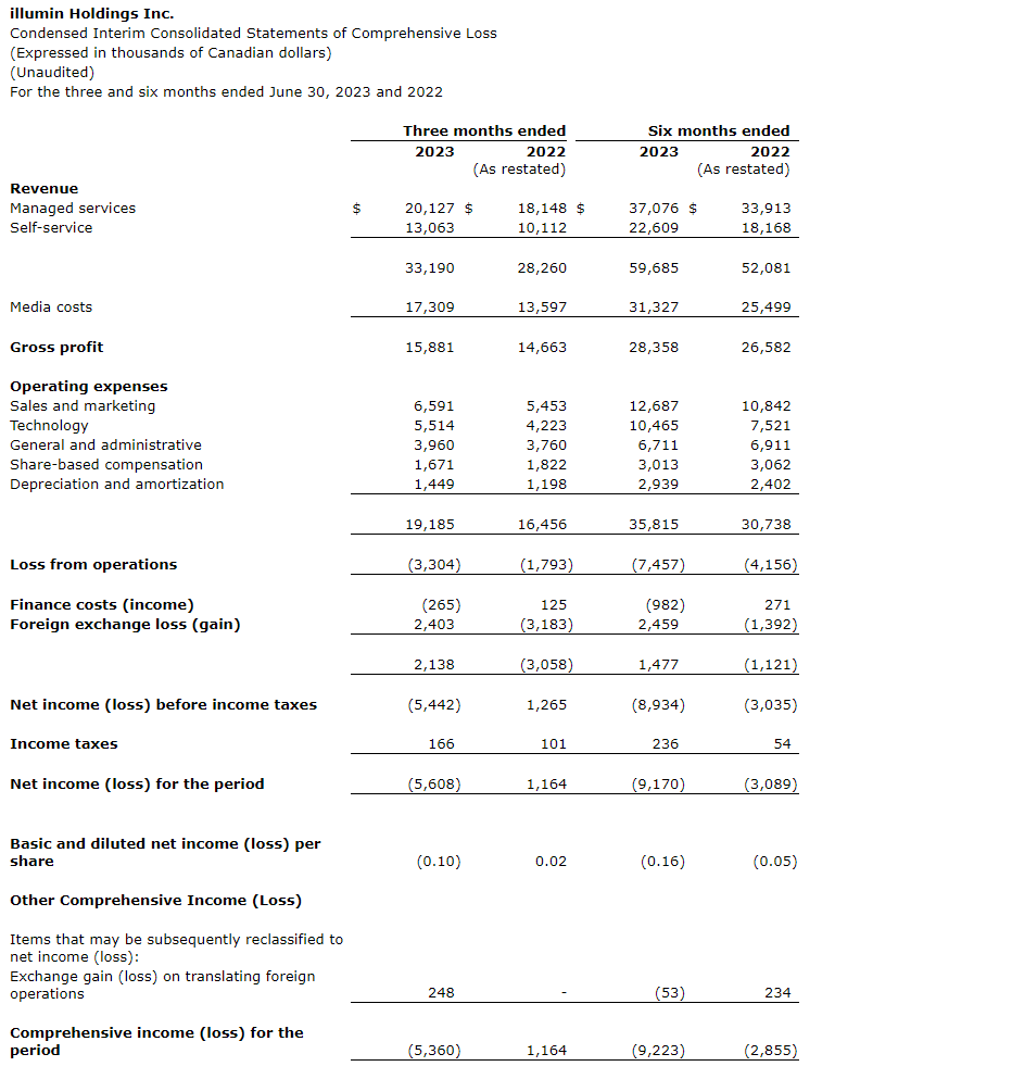 ILLUMIN REPORTS SECOND QUARTER 2023 FINANCIAL RESULTS