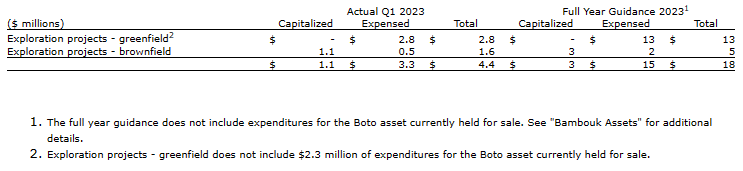 Exploration expenditures for 2023 are expected to be approximately $18.0 million, including $3.0 million on the Gosselin resource delineation drilling program, as well as other near-mine and greenfield programs.