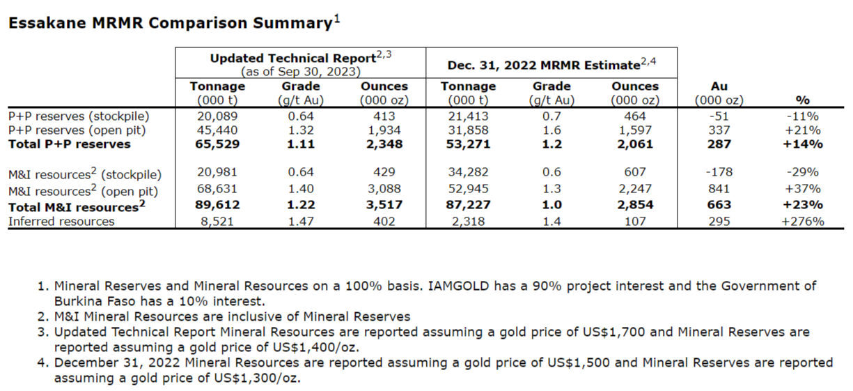 "As one of the top gold producing mines in West Africa, Essakane continues to be an integral part of Iamgold," commented Renaud Adams, President and Chief Executive Officer of Iamgold. "The filing of the updated Technical Report today demonstrates the successes our teams have had within the fence delineating additional ounces which have increased our mineral resource inventory and more than offset mine production depletion in 2023. As a result, we have been able to extend the mine life of Essakane an additional year, providing visibility for the next five years of operations at the project."
