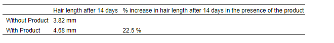 Furthermore, 91 per cent of the volunteers reported that their hair was stronger, 100 per cent were satisfied from the attenuation in their hair loss, 87 per cent stated that their hair is denser and thicker as if they have more hair, and 100 per cent of the volunteers will recommend the use of the product to others. Area measured for hair length before and after 14 days of using the product.