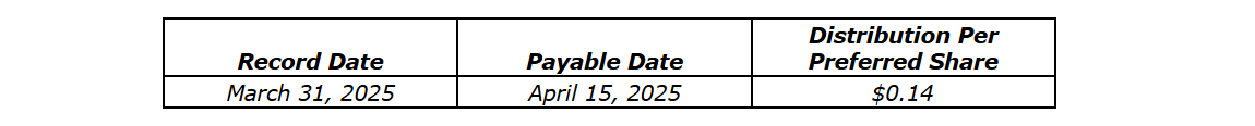 Infrastructure Dividend Split Corp. will pay a distribution for March, 2025, to Class A shareholders (see an attached table).