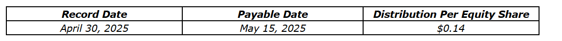 The fund has also declared the quarterly distribution for the period ending April 30, 2025, payable to preferred shareholders (see an attached table).