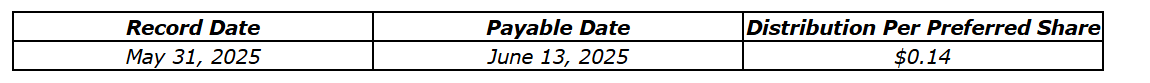 Infrastructure Dividend Split Corp. will pay a distribution for May, 2025, to Class A shareholders (see an attached table).