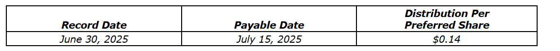 Infrastructure Dividend Split Corp. will pay a distribution for June, 2025, to Class A shareholders (see an attached table).