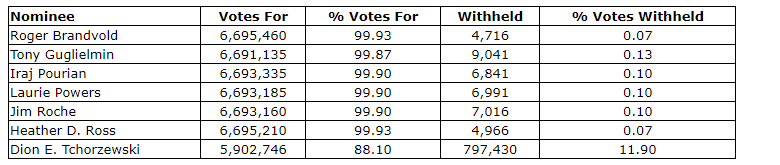 Detailed results of the vote for the election of the remaining seven directors are provided in the attached table.