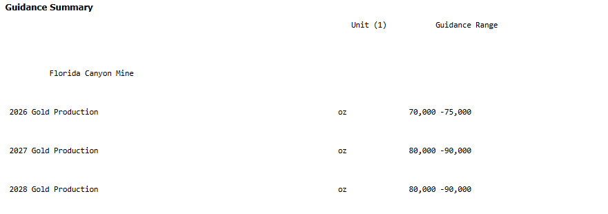 2026 production, cost and growth outlook -- Florida Canyon mine