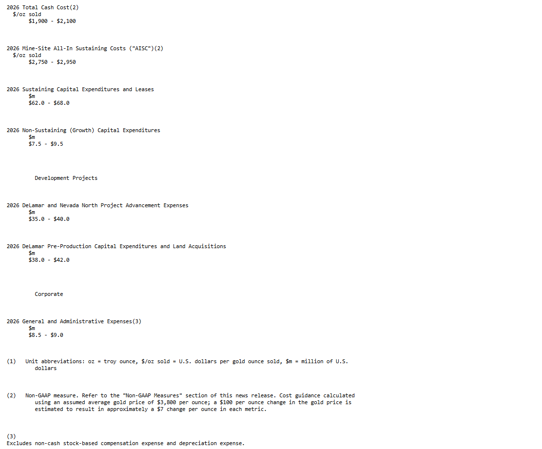 "Our sequencing strategy is focused on maximizing predictable cash flow, preserving balance-sheet flexibility and supporting the advancement of DeLamar from a position of strength. Investments in safety systems, water security, fleet reliability, leach pad planning and mine technology reflect a deliberate approach to reducing operational risk before pursuing accelerated growth. In parallel, exploration and technical optimization programs are aimed at organically growing ounces around existing infrastructure and enhancing long-term asset value.
