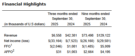 "We had an extremely busy third quarter, executing on the sale of 15 assets and significantly reducing the company's debt level. Of specific importance was the full repayment of the KeyBank corporate credit facility, which featured onerous covenants and restrictions, and will provide additional flexibility for the company in the coming months," commented Adlai Chester, chief executive officer for the company. "There are a handful of additional assets that are under definitive contract to be sold prior to year-end, subject to satisfaction or waiver of due diligence and other customary closing conditions."