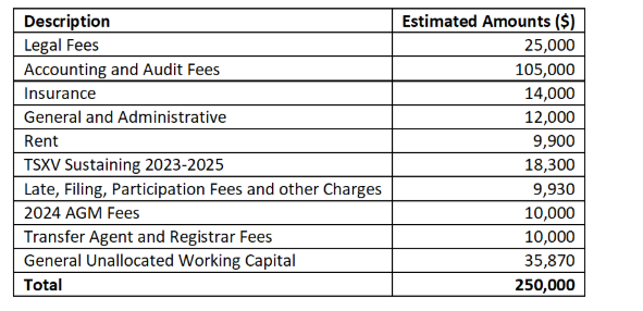 for a full revocation of the FFCTO. The company intends to allocate the proceeds from the financing as shown in the attached table.
