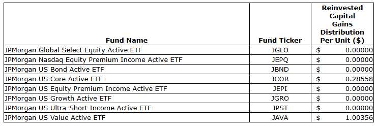 J.P. Morgan Asset Management has declared the final annual reinvested capital gain distributions for the below-listed JPMorgan ETFs (exchange-traded funds) for the 2025 tax year.