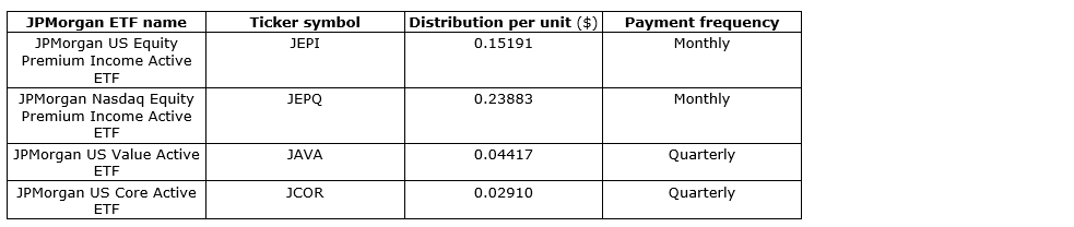 J.P. Morgan Asset Management (JPMAM)* today declared the final March, 2026, cash distributions for the JPMorgan ETFs (exchange-traded funds) listed in the attached table. The JPMorgan ETFs trade on the Toronto Stock Exchange. Unitholders of record on April 1, 2026, will receive cash distributions payable on April 8, 2026. Details of the per-unit distributions are provided in the attached table.