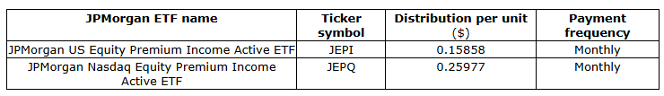 J.P. Morgan Asset Management has released the final April, 2026, cash distributions for the below-listed JPMorgan ETFs (exchange-traded funds). The JPMorgan ETFs trade on the Toronto Stock Exchange. Unitholders of record on May 1, 2026, will receive cash distributions payable on May 7, 2026. Details of the per-unit distributions are as follows.