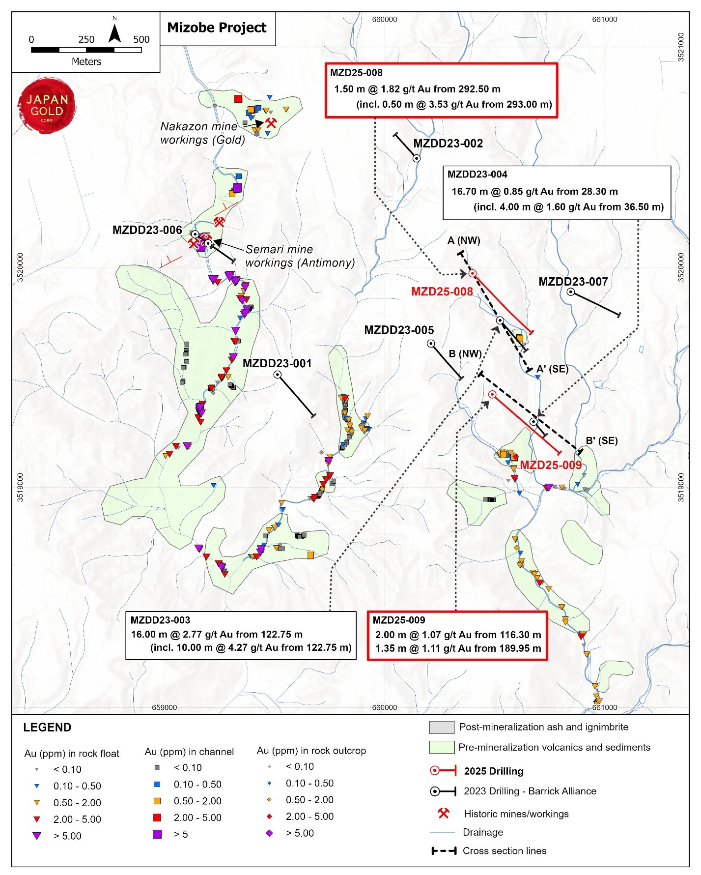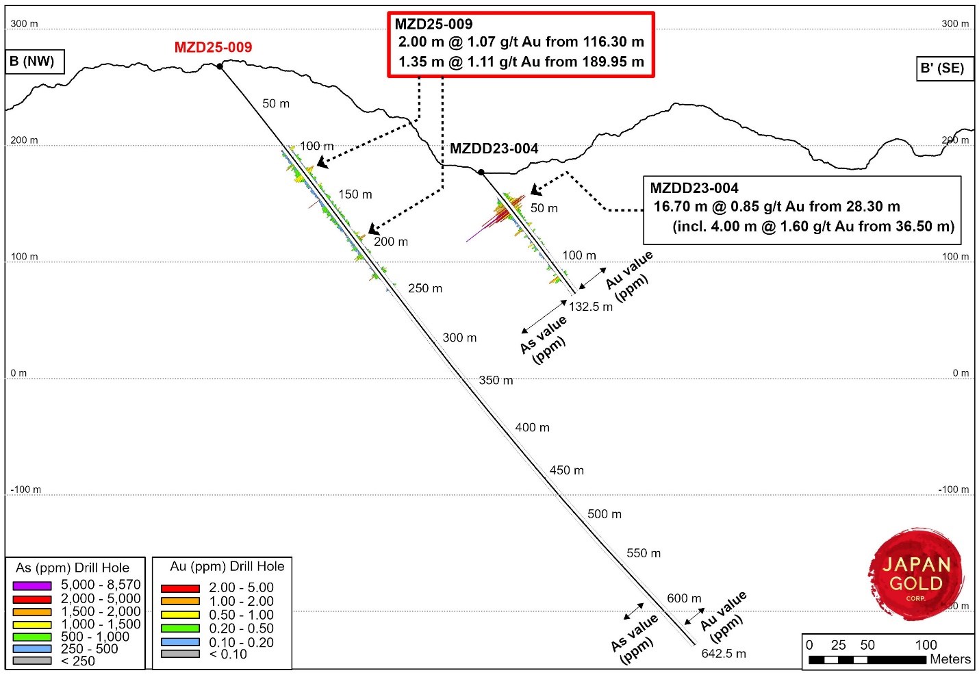 Figure 4: Mizobe cross section (2025 drill hole MZD25-009)