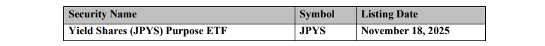 Security name:  Yield Shares (JPYS) Purpose ETF