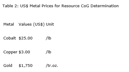 Table 3 provides a consolidated mineral resource statement for the Idaho cobalt operations, including its RAM MRE