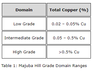 The following table summarizes the tonnage and grade ranges for the Whittle Pits: