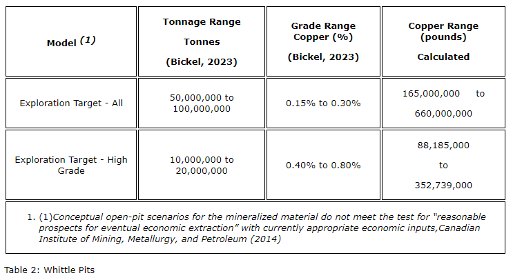 "This improved understanding is extremely valuable for guiding the drilling that will advance the copper mineralization into the inferred and indicated resource categories. Our upcoming drill program will utilize the conceptual Whittle Pits as outlined in the Report. Field-based geologic mapping combined with the sophisticated modeling, is giving us a high level of confidence in strategically