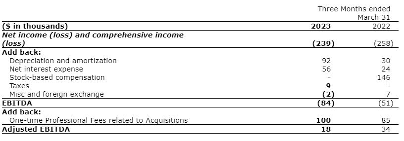 - Consolidated EBITDA (earnings before interest, taxes, depreciation and amortization) of negative $84,518 and adjusted EBITDA of $15,482.
