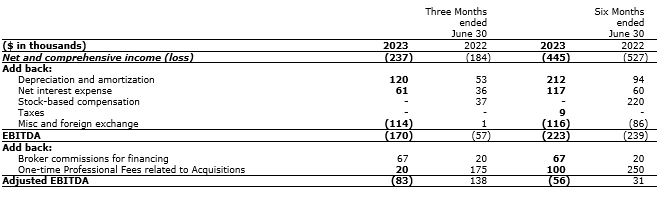 EBITDA refers to net income (loss) determined in accordance with IFRS, before depreciation and amortization, net interest expense (income) and income tax expense (recovery). The company defines adjusted EBITDA as EBITDA plus stock-based compensation expense, restructuring, fair value adjustments, listing expense and transaction costs, impairment, and finance income.