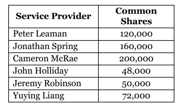 30, 2025, was approved by disinterested shareholders, the following common shares have been issued as further set out below.