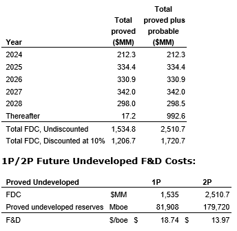 An attached table contains the McDaniel estimate of FDC required to bring total proven and total proven plus probable reserves onto production.