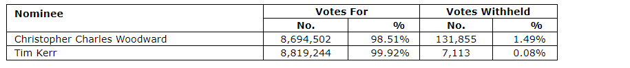 The Keg Royalties Income Fund's information circular dated March 27, 2023, were elected as trustees of the trust at its annual meeting of unitholders held on May 9, 2023. The results of the voting for each nominee are as shown in the attached table.