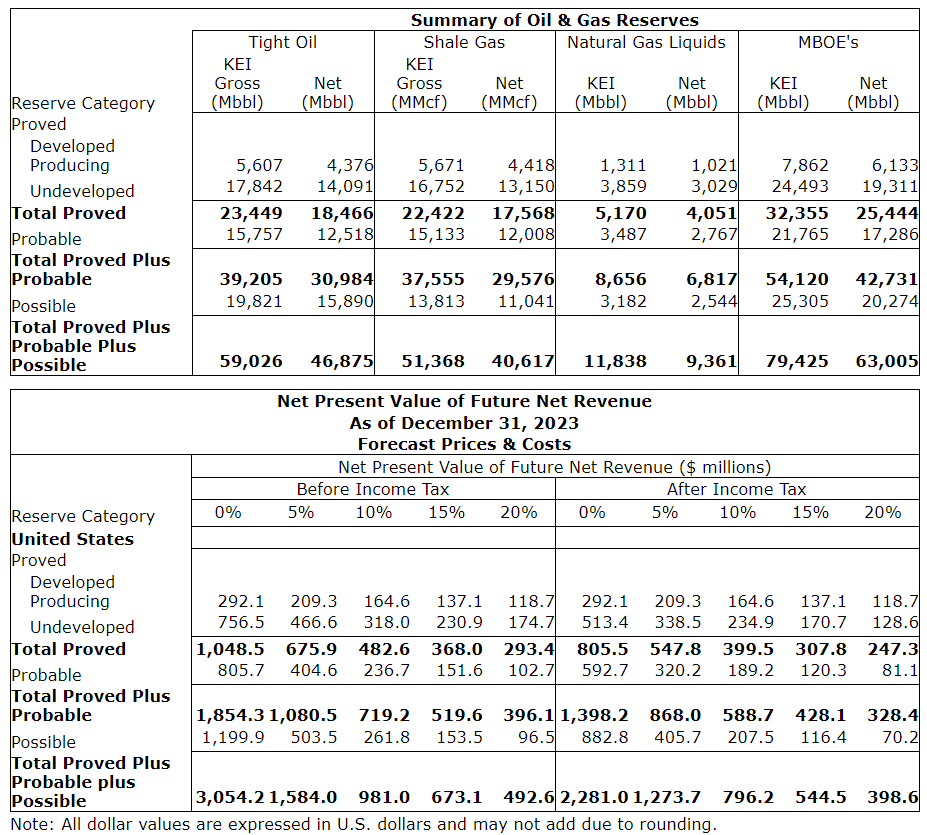 Readers are referred to the company's Form 51-101F1 statement of reserves data and other oil and gas information for the year ended Dec. 31, 2023, which can be accessed electronically from the SEDAR+ website, for additional information.